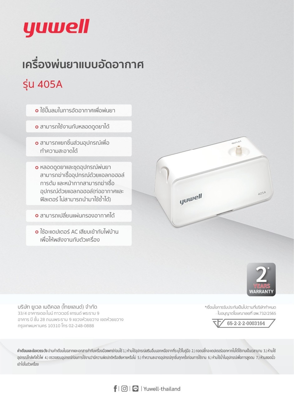 เครื่องพ่นละอองยา YUWELL Nebulizer รุ่น 405A รายละเอียดคุณสมบัติ